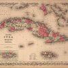 Art Source International is proud to offer this map from the 1868 edition of Coltons General Atlas. Colton atlases, especially those from the late 1860’s, have become increasingly rare. These well maintained examples are the first for sale by our store in eight years. The General Atlas was the first single edition atlas published by the Colton brothers succeeding the expensive two volume Atlas of the World. These maps have the signature ‘ inch Colton border surrounding each map. The Colton firm refused to compromise quality, choosing to compete for sales in the finer quality international market rather than the inexpensive domestic one. Because of this, all maps were engraved by steel plates rather than by wax engraving which was the most common method used at this time. This map of Cuba and Jamaica with an inset of Puerto Rico is very detailed with identification of countries, important cities, rivers, lakes, mountain ranges, and railroad lines. Each map has beautiful muted red, green, tan, pink, and yellow hand coloring used to distinguish regions. ‘