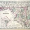 Art Source International is proud to offer this map of Delaware and Maryland from the 1873 edition of Colton’s General Atlas. Colton atlases, especially those from the early 1870’s, have become increasingly rare. This map has been very well maintained. Its original hand coloring remains quite rich.