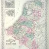 Art Source International is proud to offer this map of Holland and Belgium from the 1873 edition of Colton’s General Atlas. Colton atlases, especially those from the early 1870’s, have become increasingly rare. This map has been very well maintained. Its original hand coloring remains quite rich and insets of Amsterdam and Brussels of very clear.