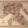 Art Source International is proud to offer this map from the 1868 edition of Coltons General Atlas. Colton atlases, especially those from the late 1860’s, have become increasingly rare. These well maintained examples are the first for sale by our store in eight years. The General Atlas was the first single edition atlas published by the Colton brothers succeeding the expensive two volume Atlas of the World. These maps have the signature ‘ inch Colton border surrounding each map. The Colton firm refused to compromise quality, choosing to compete for sales in the finer quality international market rather than the inexpensive domestic one. Because of this, all maps were engraved by steel plates rather than by wax engraving which was the most common method used at this time. This map of Northern Italy is very detailed with identification of countries, important cities, rivers, lakes, mountain ranges, and railroad lines. Each map has beautiful muted red, green, tan, pink, and yellow hand coloring used to distinguish regions. ‘