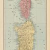This colorful map of Corsica and Sardinia came from George F. Crams 1897 Standard American Railway System Atlas. The George F. Cram Company started in 1869 and became synonymous with accuracy and innovation.