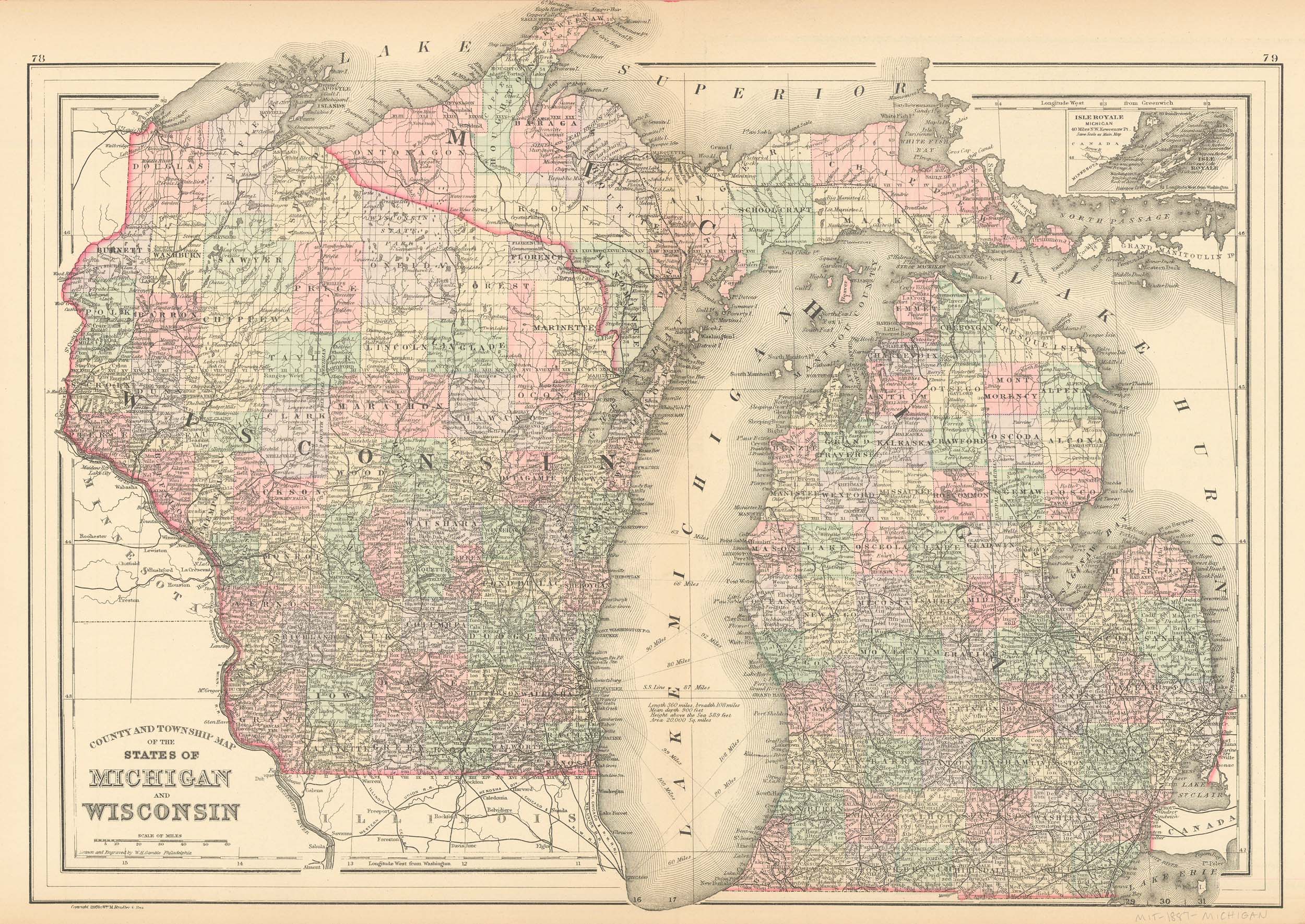 County and Township Map of the States of Michigan and Wisconsin