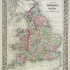 This map was produced by S. Augustus Mitchell in 1874 for his New General Atlas. This map shows Mitchell’s traditional grape vine border, characteristic pastel coloring and abundant details of geographical features. A Map of England and Wales are illustrated on this map. Counties are distinguished by color. These 1874 maps offer a fascinating perspective of areas that have since undergone significant growth and change, in addition to their value as great examples of Mitchell’s work