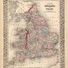 This original hand colored map of England and Wales came from Mitchells New General Atlas, published in 1877. This map details cities and towns, rivers, topography, and existing railroads at the time. Wagon trails and major routes of transport are also shown.