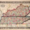 With characteristic floral boarders and beautiful, muted pastel coloring, these 1864 maps are fantastic examples of Mitchells work. Counties, important cities, mountain ranges, rivers, lakes, and railroads are identified. This hand colored map illustrates the states of Kentucky and Tennessee.