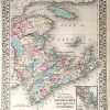 This map came from Mitchells New General Atlas, 1881.This map shows major railroads, water bodies, and towns.Decorative ivy border, and nice colorful detail. Would looknice framed! Has nice inset map of Halifax.