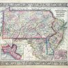 With characteristic floral boarders and beautiful, muted pastel coloring, these 1864 maps are fantastic examples of Mitchells work. Counties, important cities, mountain ranges, rivers, lakes, and railroads are identified. This hand colored map illustrates the State of Pennsylvania.