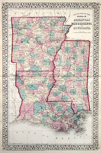 County Map of the State of Arkansas, Mississippi, and Louisiana