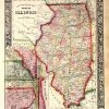 With characteristic floral boarders and beautiful, muted pastel coloring, these 1864 maps are fantastic examples of Mitchells work. Counties, important cities, mountain ranges, rivers, lakes, and railroads are identified. This hand colored map illustrates the state of Illinois with an inset showing the plan of Chicago.