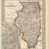 The Mitchell company was one of the first to try out the new technique of engraving on steel plates, experimenting with steel almost 20 years before the rest of the publishing industry. He was printing with steel in the early 1830s; the general switch to steel was approximately 1850. During the early years of the company, Mitchell published mainly maps and travel guides. In 1860, Mitchell started producing “Mitchell’s New General Atlas”, and Mitchell Sr. retired and turned the business over to his son of the same name. The New General Atlas was published until 1893. Today Mitchell maps are sought after for their fine engraving, bright coloring, and attention to detail. They are some of the finest maps produced in the 1860’s. This map produced in 1867, has Mitchell’s unique floral border, and beautiful hand coloring. The state of Illinois is detailed on this map, counties, cities, towns and transportation routes are illustrated. An inset map showing the plan of Chicago, streets, city sections, parks, and railroads are illustrated.
