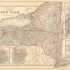 This map was made by S. Augustus Mitchell for “Mitchells New General Atlas” published in 1887. The well maintained maps in this atlas feature Mitchell’s characteristic pastel coloring and abundant details of geographical features. New York State is illustrated on this map with insets showing the plans of Albany, Rochester, Troy and Buffalo, and the vicinity of New York City. Details include the names of counties, important towns, rivers, lakes, and railroads. Counties are distinguished by color. These 1887 maps offer a fascinating perspective of areas that have since undergone significant growth and change, in addition to their value as great examples of Mitchell’s work.