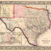 The Mitchell company was one of the first to try out the new technique of engraving on steel plates experimenting with steel almost 20 years before the rest of the publishing industry. He was printing with steel in the early 1830s; the general switch to steel was approximately 1850. During the early years of the company, Mitchell published mainly maps and travel guides. In 1860, Mitchell started producing “Mitchell’s New General Atlas”,and Mitchell Sr. retired and turned the business over to his son of the same name. The New General Atlas was published until 1893. Today Mitchell maps are sought after for their fine engraving, bright coloring, and attention to detail. They are some of the finest maps produced during this time period. This map produced in 1866, has Mitchell’s unique floral border, and beautiful hand coloring. This map details the State of Texas with an inset of Galveston Bay. Counties, cities, towns, lakes, rivers, mountains, and transportation routes are noted. Each map was printed on thick paper with vibrant hand color.