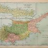 This map of Cyprus was produced by George F. Cram for “Crams Modern Atlas – Deluxe Edition,” published in 1905. The maps from this atlas are more detailed then the maps from most other Cram atlases. The George F. Cram Company was established in 1869 and the Cram name quickly became synonymous with accuracy and innovation. Map regions are outlined and highlighted in printed pastel coloring. Cities, towns, major transportation routes, and topographical features are noted. A fine map in coloring and detail. Also included is an inset map of Crete or Candia.