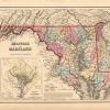 Art Source International is proud to offer this map from the 1857 edition of Coltons General Atlas. Colton atlases, especially those from the late 1850’s, have become increasingly rare. The General Atlas was the first single edition atlas published by the Colton brothers succeeding the expensive two volume Atlas of the World. The Colton firm refused to compromise quality, choosing to compete for sales in the finer quality international market rather than the cheap domestic one. Because of this, all maps were engraved by steel plates rather than by wax engraving which was the most common method used at this time. This map of Delaware and Maryland is very detailed. Counties, cities, railroads, common roads, streets, canals, rivers and topographical features are illustrated. Muted pastel coloring in pink, blue, green, and yellow. This map also shows a large inset map of the District of Columbia.