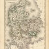 This hand colored map was made by Adam and Charles Black for “Blacks General Atlas” published in 1841. Denmark is illustrated on this map. Details include the names of political regions and many cities,and illustrations of rivers, railroads, lakes, and mountains. Regions are distinguished by pink, yellow, blue, and green outline color which is well maintained for the age of the map. The impression of the press used to engrave the map is still visible.