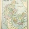 This map of Denmark was produced by George F. Cram for “Cram’s Modern Atlas – Deluxe Edition,” published in 1901. The maps from this atlas are more detailed then the maps from most other Cram atlases. The George F. Cram Company was established in 1869 and the Cram name quickly became synonymous with accuracy and innovation. Map regions are outlined and highlighted in printed pastel coloring. Cities, towns, major transportation routes, and topographical features are noted. A fine map in coloring and detail.