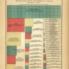 This fourth edition of Rand McNally and Co.s “Indexed Atlas of the World” was produced in 1882. Each very detailed map has light pastel coloring and identifies regions, major sea routes, railroad lines, important cities and land-forms. The atlas also included several special diagrams noting various commerce, religions, agriculture and more. This diagram breaks down all the religious denominations in the United States as of January 1, 1881. The squares represent the number of Priests or Ministers in hundreds.