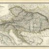 Large, detailed steel-plate map of the Austrian Empire, including Hungary and the Balkan region. Excellent detail of rivers, towns, major transportation routes. Beautiful mountain detail. In French, scale 1:2,000,000.