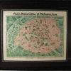 Paris at the turn of the century is shown here in a stunning and colorful map. This is the city that was called at the time “the Capitol of Europe”, as it was the cultural and artistic crown of the continent. Writers, artists and intellectuals were drawn to experience its powerful creative influence and stayed, charmed by its romantic air. This map captures a bit of that time, as it depicts the city, and features its famous landmarks by illustrating them with a vignette. So we see small architectural drawings of Notre Dame, Sacre Coeur, Arc De Triomphe, Tour Eiffel, and dozens more. All streets are named within the city walls and likewise major thoroughfares that spindle from the city center are labeled. This map is in excellent condition and is exquisitely framed with all archival materials being used. It is enhanced by an inner mat, inner liner, marbleized paper, textured mat, UV protective glass and an ornate wood frame.
