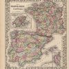 This map was made by S. Augustus Mitchell for “Mitchells New General Atlas” published in 1884, by WM. M. Bradley & Co. The well maintained maps in this atlas feature Mitchell’s characteristic pastel coloring and abundant geographical features. Details include the names of countries, regions, cities, towns, transportation routes, rivers, lakes, and mountain ranges. Regions are distinguished by color. These 1884 maps offer a fascinating perspective of areas that have since undergone significant growth and change, in addition to their value as great examples of Mitchell’s work.