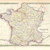 Thomas G. Bradford (1802-87) of Boston Massachusetts included this map in his first atlas, titled “A Comprehensive Atlas Geographical, Historical and Commercial,” published in 1835. These skillfully created maps were hand colored, which adds to their classic, decorative appeal. A sage border surrounds this map of France. Pink, yellow, and green are used as outline colors throughout the body of the map. Counties, important cities, rivers, and bodies of water are identified.