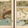 This map was produced for the 1902 Diercke, Schul-Atlas fur Hohere Lehranstalten, (Diercke Education Atlas for Higher Educational Institutions) This atlas was prepared and issued by C. Diercke and E.Gaebler for the Westermann publishing group in Braunschweig. With the help of fellow cartographer, Eduard Gaebler, Carl Dierckes maps became a staple in the geography classrooms in Germany. From 1893 until his death, Diercke was editor of all the maps for Westermann Verlag. All text is in German with full color that has remained quite bold. A wonderful example of the fine German engraving work of the time. These beautiful, topographic maps show the physical attributes and contours of the land as well as identifies cities, countries, rivers, mountains, boundaries, and more. They are double sided maps (shown side by side in image) which have corresponding information to the country on the opposite side. This map shows France on one side and has four smaller maps on the other side regarding: Rom und Umgegend (Rome and Environs), Rom u. das Albaner-Gebirge (Rome and the Albanian Mountains), Temperatur und wichtige Produkte (Temperature and Major Products), Golf von Neapel (Gulf of Naples), Toulon u. Umgegend (Toulon and environs), Lyon u. Umgegend (Lyon and Environs), Bev’lkerungsdichte (Population Density), Belfort u. Umgegend (Belfort and Environs), and Mt. Cenis.