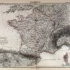 This German map of France was made in 1881 by Adolf Stieler for Stieler’s Hand Atlas. Borders are distinguished by beautiful hand painted outline color. This detailed, copper plate engraved, map shows topographical features, and many place names. An inset shows the vicinity of Paris.