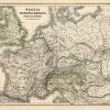 This is a beautiful map of Gallia, Britannia, and Germania published by Dr. Henry Kiepert for his “Atlas Antiquus” issued in 1892. The map has Latin text with original hand-coloring in outline.
