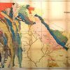 This map of parts of Wyoming, Idaho and Utah shows the dominant geological composition of areas. Mountains, important topography, railroads,and Indian Reservations are also identified.