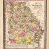 We are privileged to offer this map of Georgia, issued as part of S. Augustus Mitchells New Universal Atlas of 1851. Mitchell, one of America’s premier mapmakers, published this atlas from 1846-1849. In 1850, Thomas, Cowperthwait and Co. purchased the copyright for this atlas. He enlarged the atlas to include more maps and also added the new features of a chromolithographed title page and contents page. The lithographed maps issued by Cowperthwait and Co. are what we consider the finest maps produced in this era of mapmaking. One of the reasons that these maps by Cowperthwait are exceptionally difficult to find is because of their short period of publication from 1850-1854. The copyrights on some of these maps show Mitchell or Cowperthwait’s name.