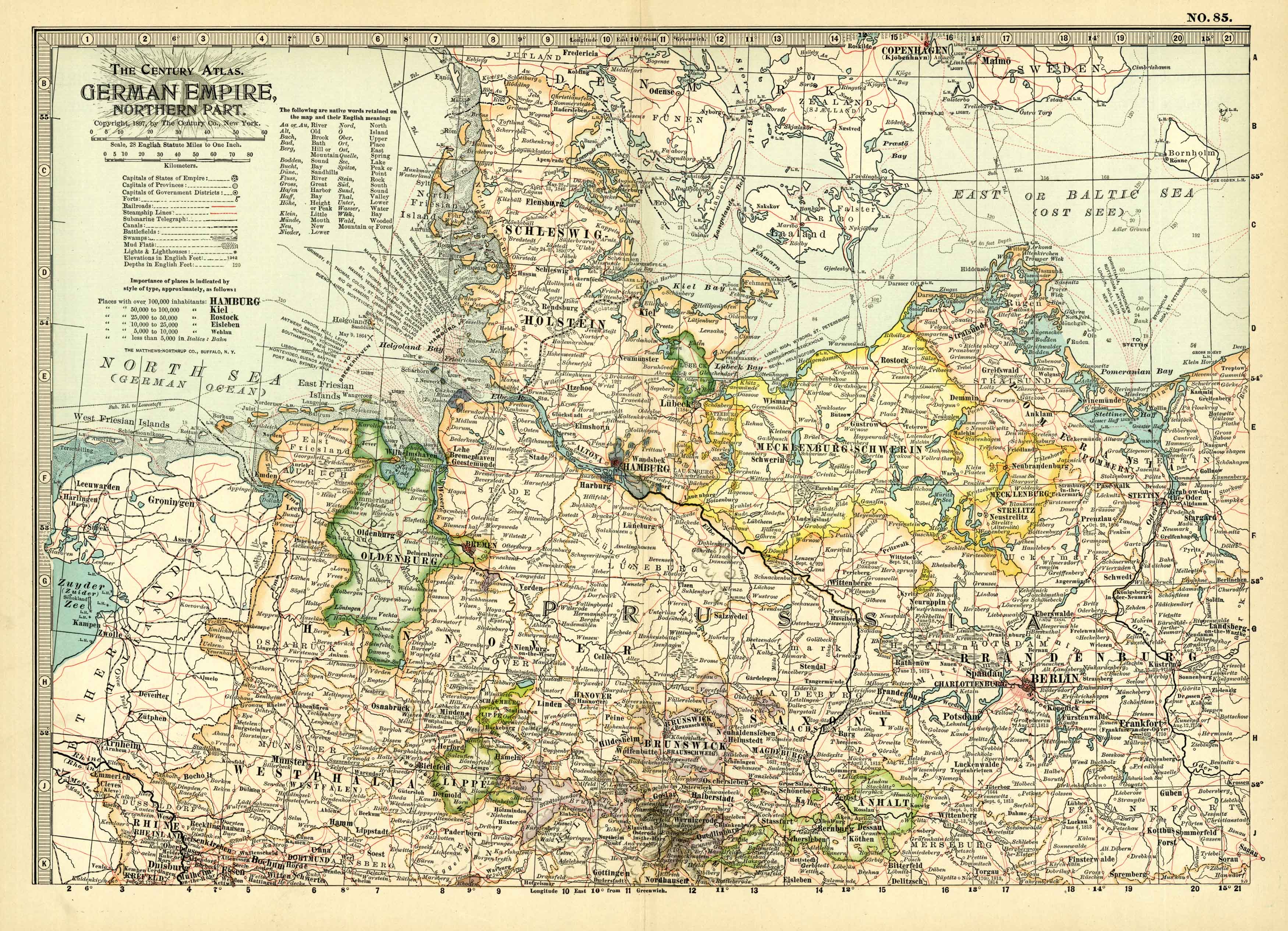 German Empire, Northern Part with inset of Berlin and Hamburg