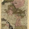 This map by Petrus Schenck (or Pieter Schenk the Elder), a prominent Dutch cartographer and engraver of the late 17th and early 18th centuries. The title translates from Latin as “The Theater of the War on the Rhine”, referring to military campaigns along the Rhine River—particularly during the War of the Grand Alliance (1688–1697) or possibly the War of the Spanish Succession (1701–1714), both of which saw significant action in the Rhineland. In the title, it mentions Daniël Wolf baron van Dopf, who was a Dutch officer and nobleman. The loose translation of the map title is “The Theater of the War on the Rhine, under the fortunate auspices of the most valiant and most illustrious Daniel Wolf van Dopff, of Art and Aigimont, General of the Dutch Army. Published and dedicated to His Imperial Majesty and the States of the United Netherlands, etc., etc., in hope and prayer for the successful conduct of affairs, most devotedly by the illustrious Petrus Schenk.”
