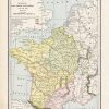 This colorful map came from Crams 1898 Universal Atlas – Geographical, Astronomical and Historical. In 1869 the George F. Cram Company was born and the Cram name quickly became synonymous with accuracy and innovation in map making. This colorful map details Feudal France.