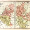 This detailed map of Holland, Belgium, and Denmark was printed in the “People’s Family Atlas of the World,” published in 1885. This map, which shows a great deal of topographical information, including lakes, rivers and mountains, shows the countries colored in muted pastel colors.