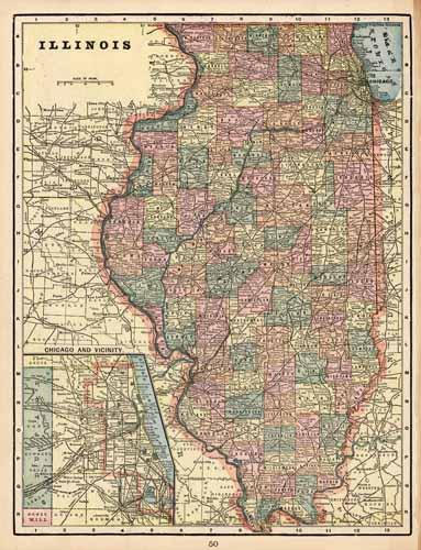 This colorful map came from Crams 1898 Universal Atlas – Geographical, Astronomical and Historical. In 1869 the George F. Cram Company was born and the Cram name quickly became synonymous with accuracy and innovation. This map of Illinois shows the primary towns, rivers, mountains, roads, and railroads. Each particular county is labeled and colored. This map would be a wonderful addition to any collection or a unique gift.