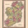 We are privileged to offer this map of Ireland, issued as part of S. Augustus Mitchells New Universal Atlas of 1851. Mitchell, one of America’s premier mapmakers, published this atlas from 1846-1849. In 1850, Thomas, Cowperthwait and Co. purchased the copyright for this atlas. He enlarged the atlas to include more maps and also added the new features of a chromolithographed title page and contents page. The lithographed maps issued by Cowperthwait and Co. are what we consider the finest maps produced in this era of mapmaking. One of the reasons that these maps by Cowperthwait are exceptionally difficult to find is because of their short period of publication from 1850-1854. The copyrights on some of these maps show Mitchell or Cowperthwait’s name.