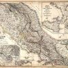 Central Italy from todays Tuscany to Naples as it was under the Roman Empire. With inset maps of Sicily and the toe of the boot, Syracusae, the Rome area, and the Naples area. Good topographic detail. From Atlas Antiquus, Twelve Maps of the Ancient World for Schools and Colleges by Dr. Heinrich Kiepert, published in English with maps in Latin. Mounted on original linen with hand-applied outline color. ‘
