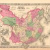 This antique map came from Johnson’s New Illustrated (Steel Plate) Family Atlas, published in 1867, by A.J. Johnson. These maps are some of the most colorful and accurate maps produced in the 1860’s, their attention to detail and the fine steel engraving make them works of art. Johnson maps are characterized by hand coloring in red, green, yellow, and pink and distinctive borders, including iron scrollwork and a Celtic design. This beautiful map of China shows countries, states and or provinces and regions, cities and towns, lakes, rivers, and water bodies, railroads, forts, and wagon trails. A fine piece that would make a nice addition to any wall in a home or office. Includes inset maps of Canton and Amoy.