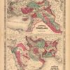 This map is from Johnsons New Illustrated Family Atlas of the World printed in 1868 by A.J. Johnson. Johnson maps are characterized by hand coloring in red and green and distinctive borders, including iron scroll work and a Celtic design.This page contains two maps, Turkey in Asia on the left and a map of Persia, Arabia, Beloochistan and Afghanistan on the right half. Both maps are colored in vibrant pastels and include the names of countries and important cities. Major roads, rivers, mountains, and lakes are also shown.