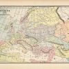This map was created by George F. Cram for Crams Universal Atlas, Geographical, Astronomical and Historical in 1900. In 1869 the George F. Cram Company was born and the Cram name quickly became synonymous with accuracy and innovation. These maps illustrate cities, towns, major transportation routes, railroads, and topographical features are noted. Maps by George Cram continue to fill collector and gift needs as they have for many years. This map of Europe in A.D. 500 has the countries divided and color coded by the various kingdoms, tribes, or groups that ruled that land. There are 11 maps similar to this one of Europe at different dates, and would make a great way to compare how the rule and land divisions have changed throughout the years. They would look great framed side by side or grouped together for beautiful collection of the history of Europe.