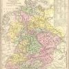 One of the dominant firms in 19th century cartography was unquestionably the Mitchell publishing company. While they had been producing fine quality maps and atlases since the 1830s, they also made instructional material that was up to date and accurate. This map comes from one of the early school atlases published by Mitchell, and contains a wealth of information, and attractive hand color. The condition is very good, with some mild staining, but mostly outside the image.