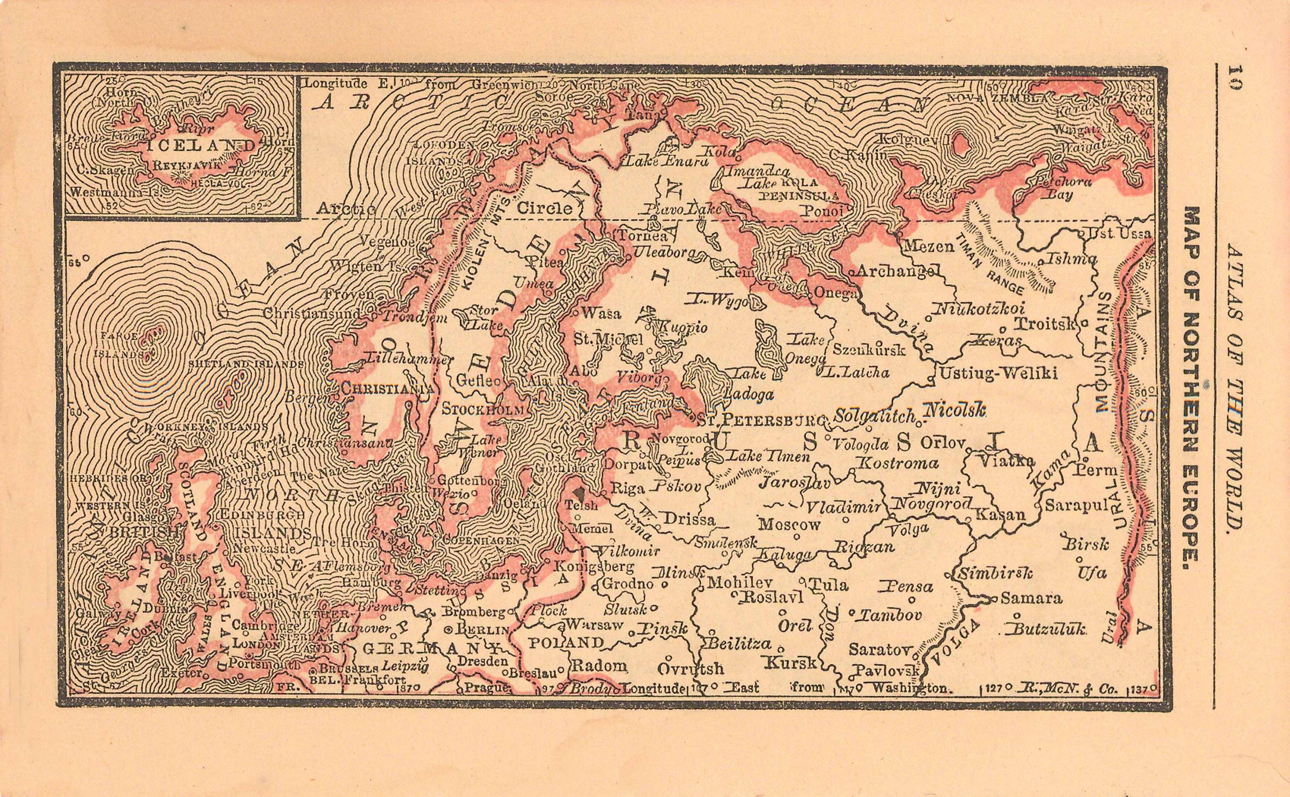 With the 19th century innovations of publishing and technology, the world became a smaller place and one which anyone could become acquainted with. As these changes blossomed, the fledgling company of Rand McNally realized the interest in small accessible material, and produced a pocket atlas. These maps carry handy reference information, and were up to date for the period. They include cities, some towns as well as some roads. They have their own charm and would be great for framing, and decorative use.