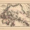 This map was made by S. Augustus Mitchell for “Mitchells New General Atlas” published in 1885, by WM. M. Bradley & Co. The well maintained maps in this atlas feature Mitchell’s characteristic pastel coloring and abundant details of geographical features. Oceanica and it’s various Island Groups is illustrated with an inset map of the Sandwich Islands. Details include the names of countries, islands and some cities. These 1885 maps offer a fascinating perspective of areas that have since undergone significant growth and change, in addition to their value as great examples of Mitchell’s work.