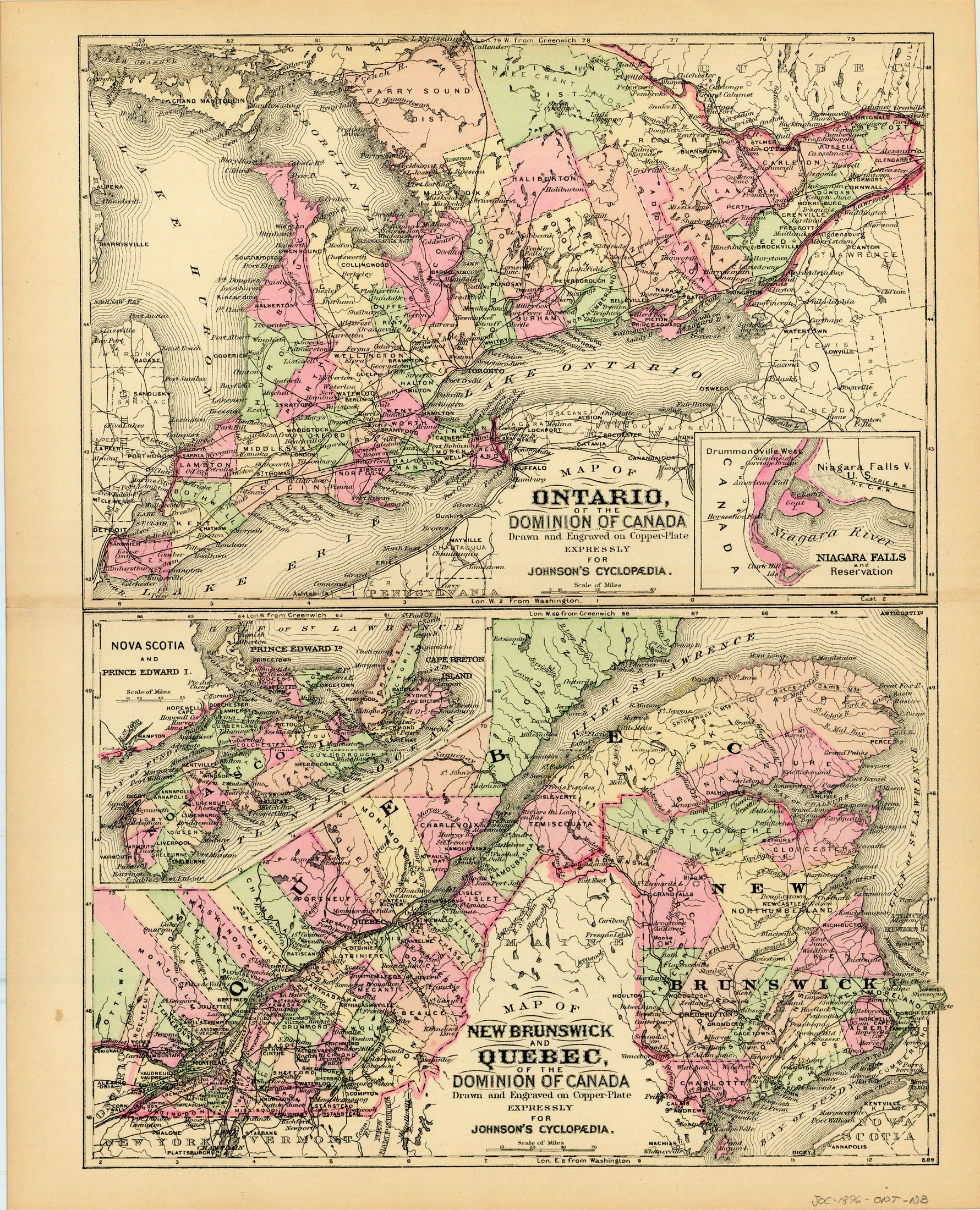 Map of Ontario, New Brunswick and Quebec, 1896