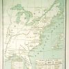This informational map of Colonial America was published in “Cram’s Unrivaled Family Atlas.” The original 13 colonies appear on the map and two tables highlight Inter-Colonial Wars and types of government found in the colonies.