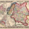 The Mitchell company was one of the first to try out the new technique of engraving on steel plates, experimenting with steel almost 20 years before the rest of the publishing industry. He was printing with steel in the early 1830s; the general switch to steel engraving was approximately 1850. During the early years of the company, Mitchell published mainly maps and travel guides. In 1860, Mitchell started producing “Mitchell’s New General Atlas”. Mitchell Sr. retired and turned the business over to his son of the same name. The New General Atlas was published until 1893. Today Mitchell maps are sought after for their fine engraving, bright coloring, and attention to detail. They are some of the finest maps produced in the 1860’s. This map, produced in 1863, shows Mitchell’s famous flower border, which is only seen in the early editions of his atlases. This map shows Russia, Sweden, Norway, Denmark, Holland and Belgium.
