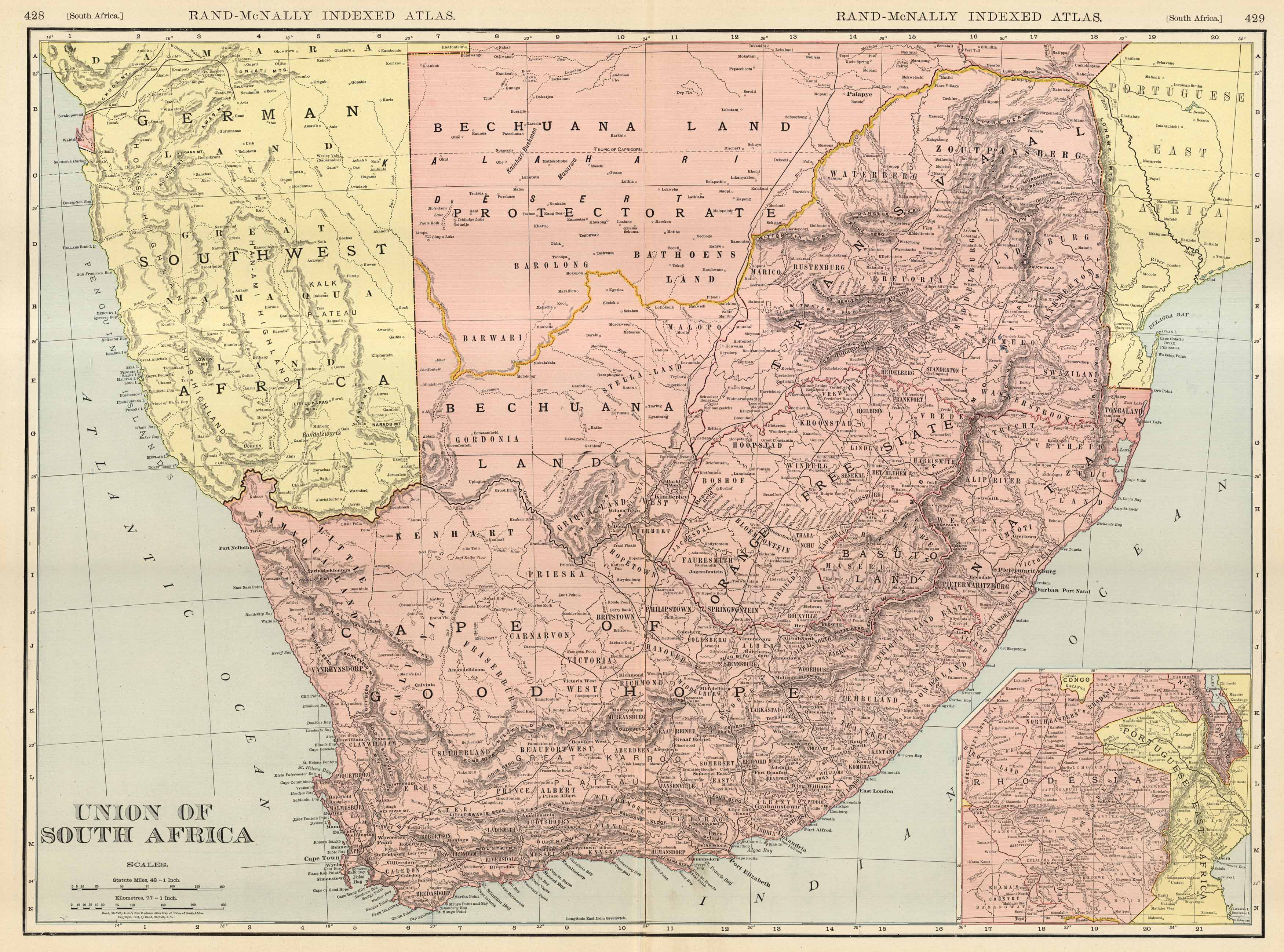 This map of of the Union of South Africa was produced by Rand McNally and Co. as part of its Commercial Atlas of America. These maps are some of our favorite maps because of the large size of each map sheet (25.5”x20.5”). The detail shown on each map is exceptional because of the map size. These maps were intended to be used by business for shipping and other uses. Roads, railroads, and rivers are clearly shown. There is more detail on these maps than any others during this time period.