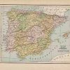 This detailed map of Spain and Portugal was printed in the “Peoples Family Atlas of the World,” published in 1887. This map shows a great deal of useful information, including lakes, rivers and railroad lines.