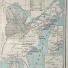 This map was made by George F. Cram in 1883 for “Crams Unrivaled Family Atlas”. This map illustrates the important events and cities in the original territory and the territory west of the Ohio River. A list of states and the date they ratified the constitution as well as a list of presidents of Congress before the Constitution was established are provided. These maps are machine colored in black and white with blue coloring for the ocean.