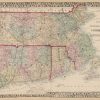 This map was produced by S. Augustus Mitchell in 1875 for his New General Atlas. This map shows Mitchells traditional grape vine border, characteristic pastel coloring and abundant details of geographical features. Counties are distinguished by different colors. Wagon trails and major routes of transport are also shown. These 1875 maps offer a fascinating perspective of areas that have since undergone significant growth and change, in addition to their value as great examples of Mitchell’s work.